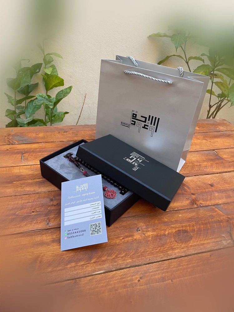 صنع خرز السبحة من مادة البكلايت البلجيكية الفاخرة. وهي من أشهر السبح لتميزها بالوانها الجذابة .