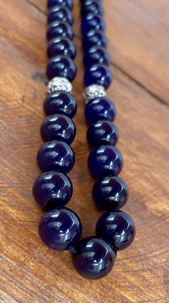 صنع خرز السبحة من مادة البكلايت البلجيكية الفاخرة. وهي من أشهر السبح لتميزها بالوانها الجذابة .