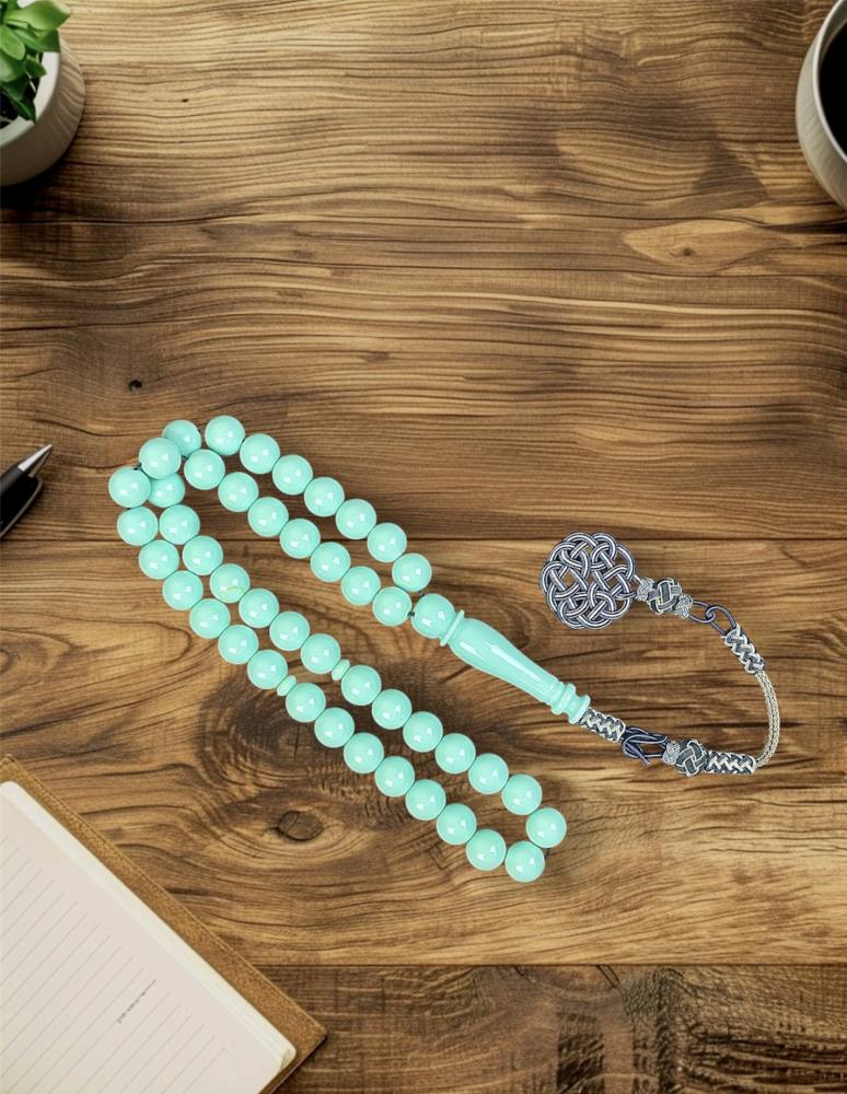 صنع خرز السبحة من مادة البكلايت البلجيكية الفاخرة. وهي من أشهر السبح لتميزها بالوانها الجذابة .