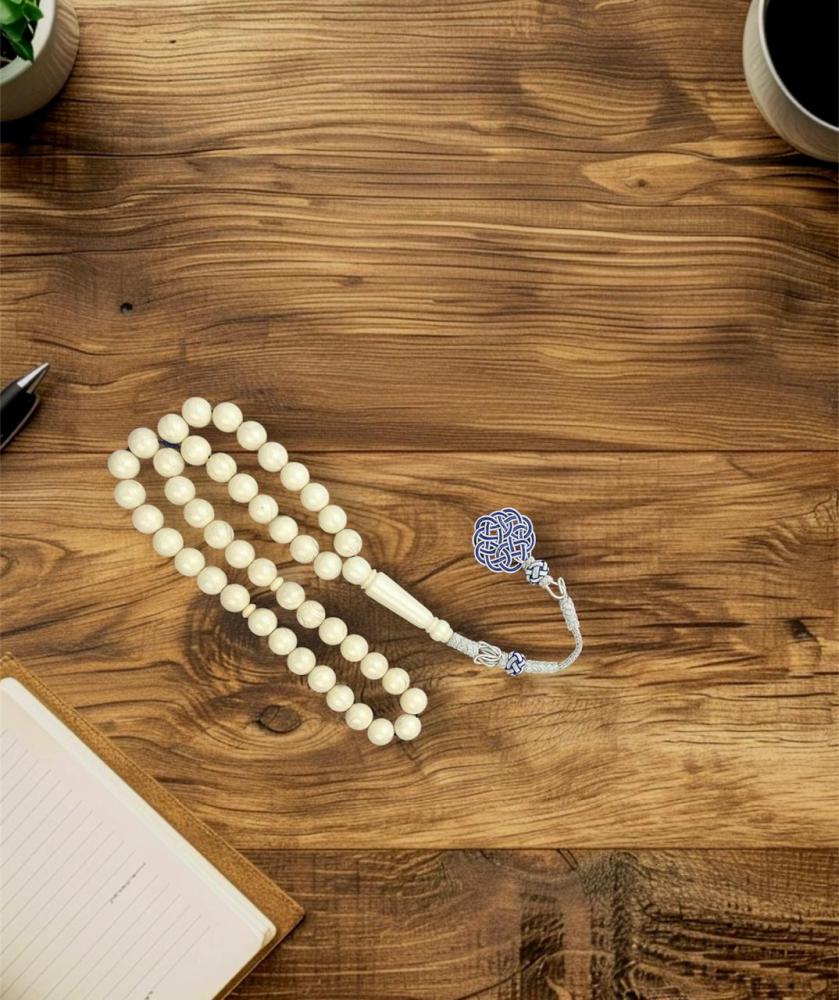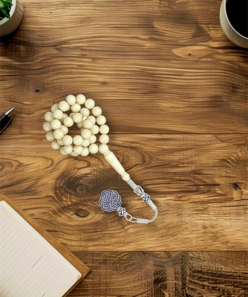 صنع خرز السبحة من مادة البكلايت البلجيكية الفاخرة. وهي من أشهر السبح لتميزها بالوانها الجذابة .